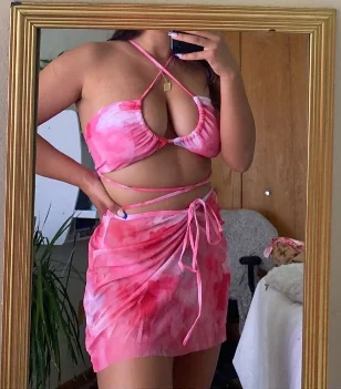ColorPink print bikini set