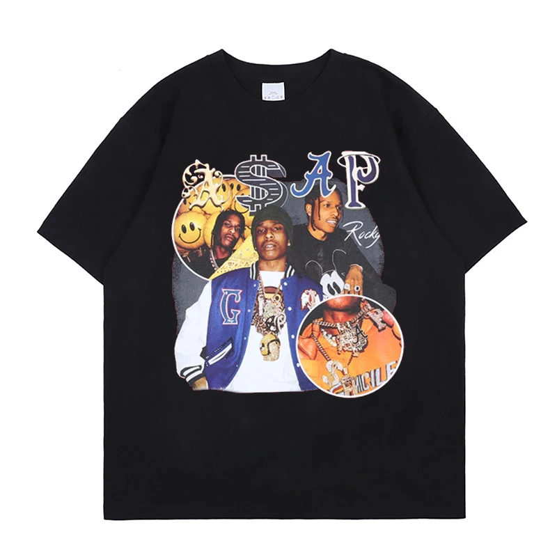 2021 Новый Asap Rocky Harajuku футболка для мужчин 2021 летняя одежда в стиле хип-хоп, футболки одежда в уличном стиле с принтом из мультфильмов детские футболки, повседневная футболка с короткими рукавами из хлопка