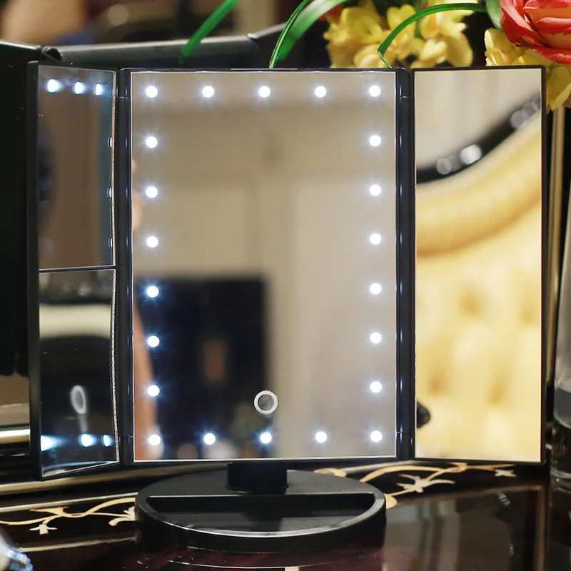 22 светодиодный светильник увеличительное зеркало для макияжа 3 раскладной столешницу сенсорный Экран косметический 10x Лупа маленькое зеркало Красота