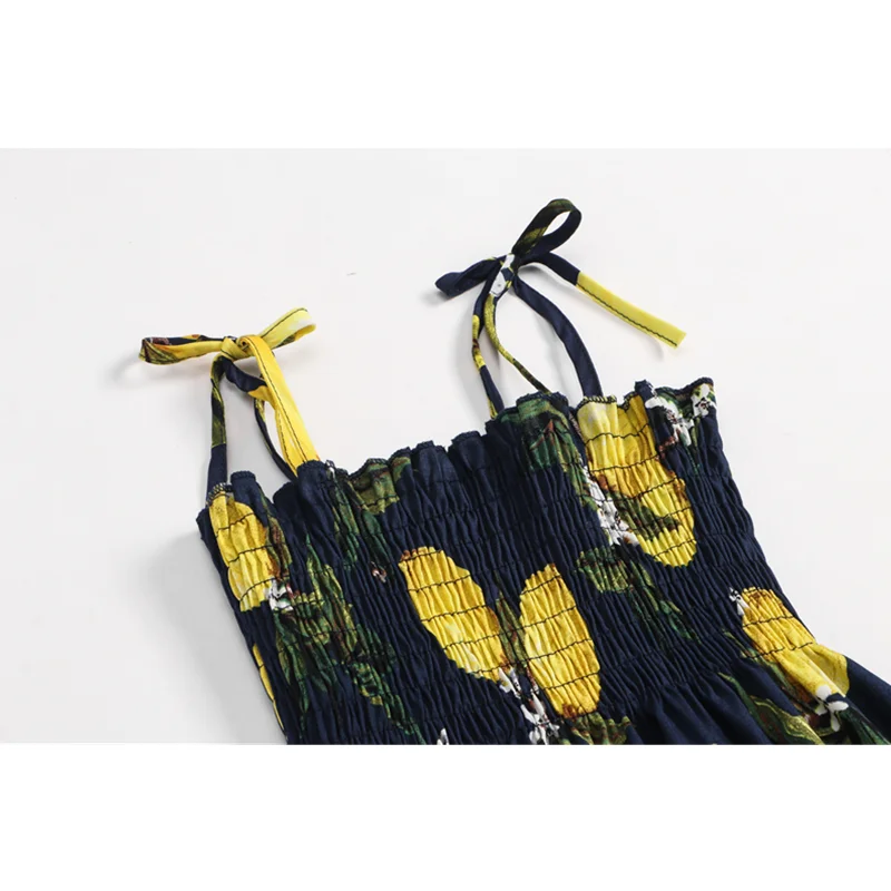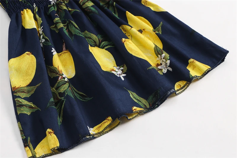 Для летних вечеринок платье для девочек голубое платье с принтом с лимонами; Хлопковое платье без рукавов Детские платья для возраста От 2 до 7 лет