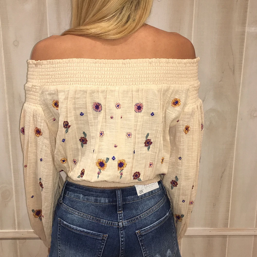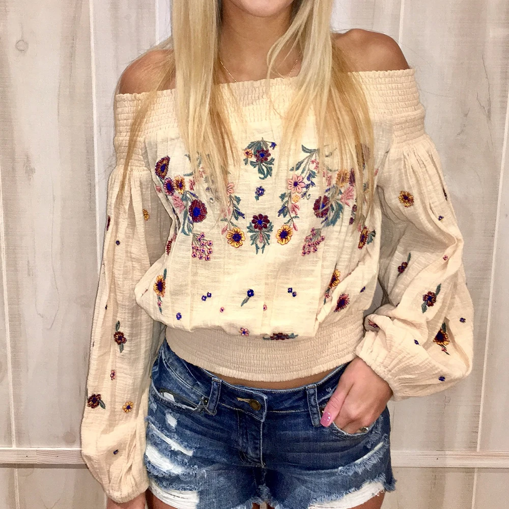 Блузка Le Luz женская с цветочной вышивкой, пикантный хлопковый топ с открытыми плечами в стиле бохо, в стиле хиппи, на лето