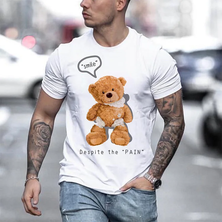 Летняя классическая мужская футболка с 3D-принтом, с медведем, с из...