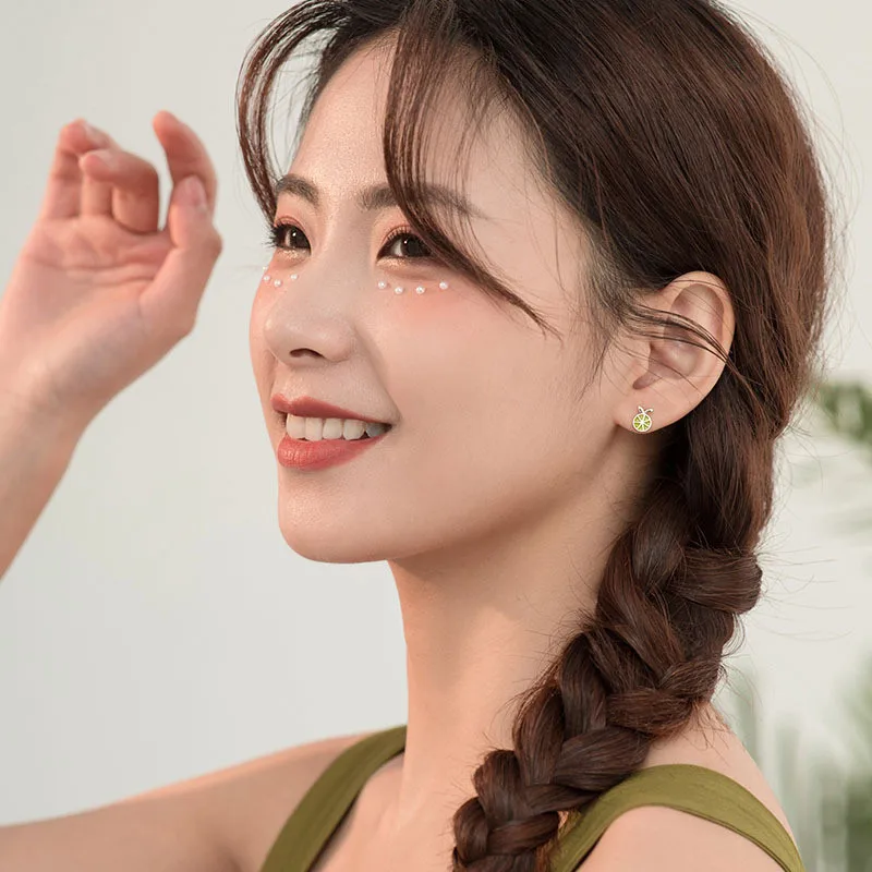 Женские серебряные серьги с фруктами MC 925 пробы, циркониевые серьги-гвоздики с бриллиантами, популярные модные серьги для пирсинга зеленого/желтого лимона