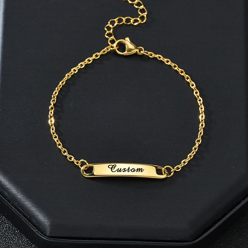 Браслет с гравировкой имени и номером, регулируемый браслет из нержавеющей стали с именной табличкой на заказ для женщин и детей, персонализированные ювелирные изделия, подарки
