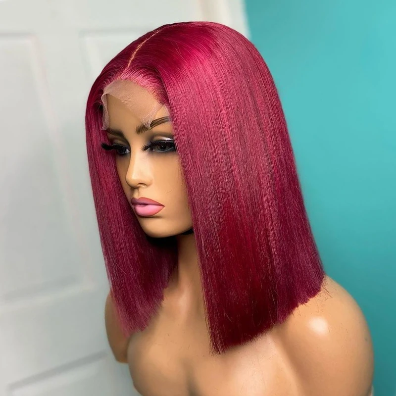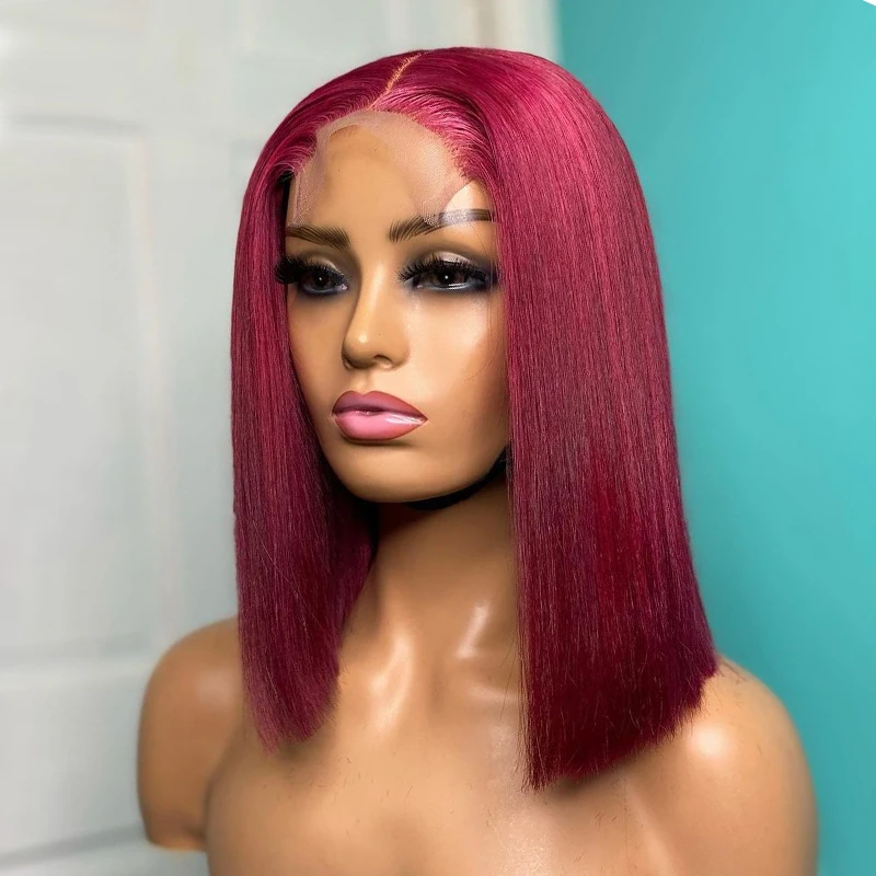 Прямой бордовый 99J боб парик красный короткий боб парик на шнуровке парик человеческие волосы на шнуровке парики для черных женщин бразильские волосы без повреждений