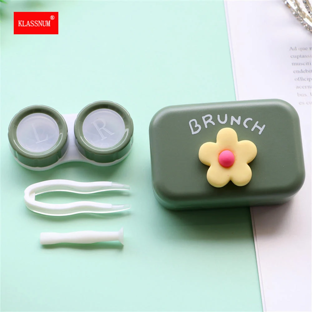 2021 контактные линзы чехол s коробка с зеркалом милое платье для девочки с цветочным принтом женские маленькие Прекрасные контактные линзы для глаз Чехол Контейнер Коробка Набор для путешествий