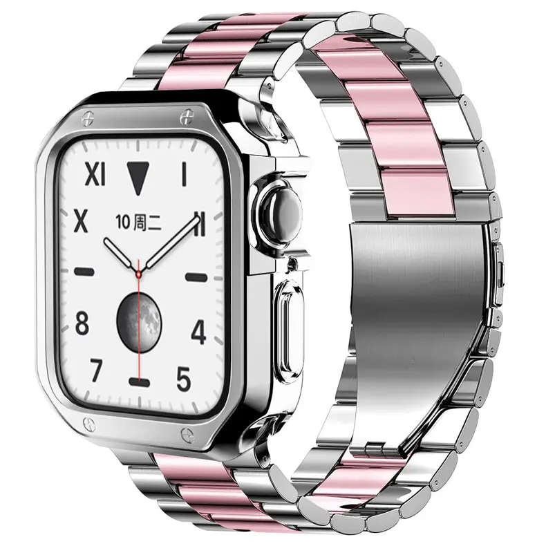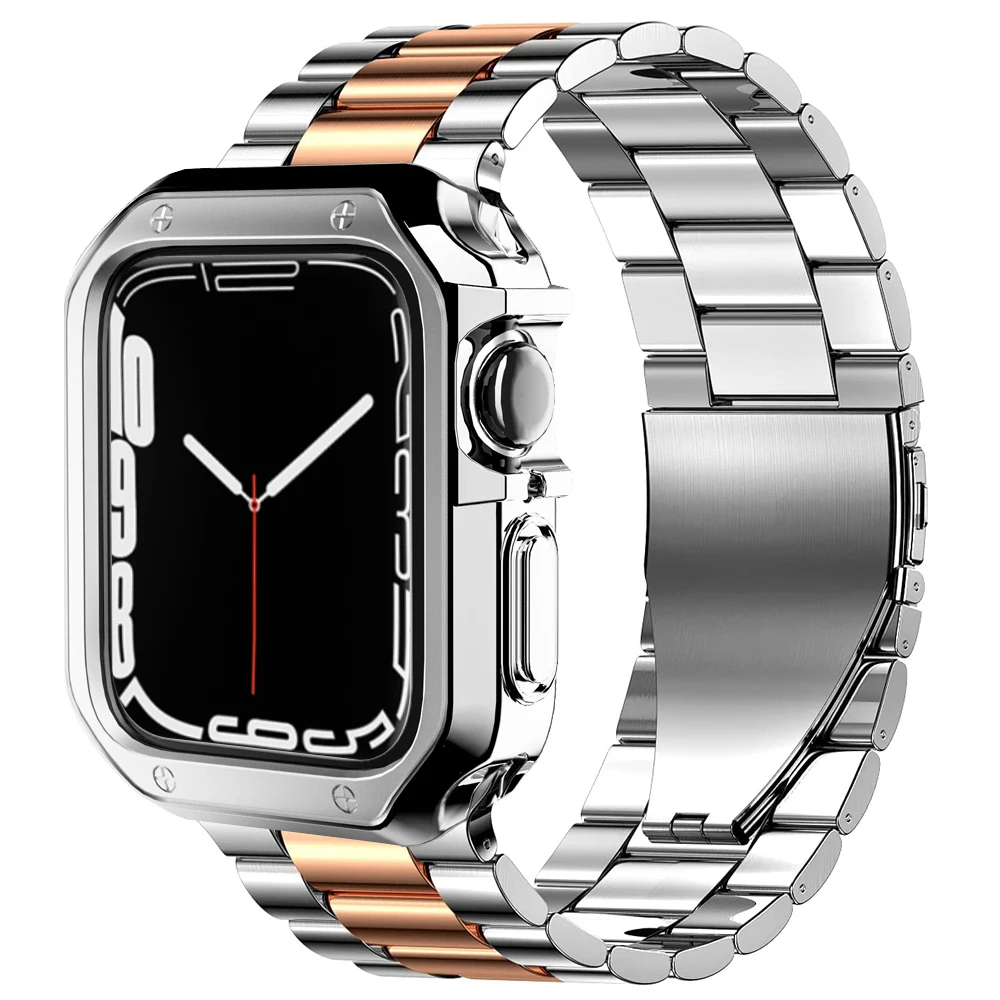 Ремешок из нержавеющей стали и силиконовый чехол для ремешка apple watch 44 мм, 40 мм, 42 мм, 38 мм, 45 мм, 41 мм, iWatch серии 7, 6, SE, 5, 4, 3, браслет с инструментом