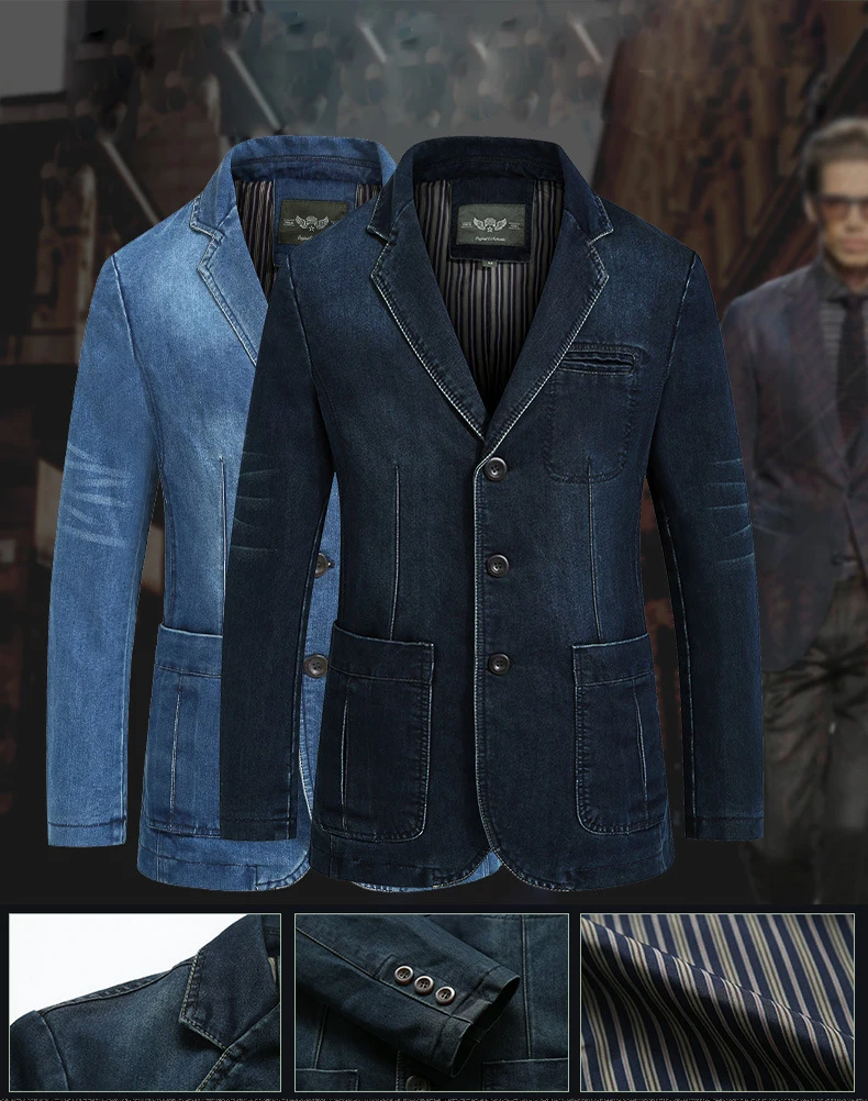 Весенний Новый Винтажный Мужской Джинсовый блейзер, Модный деловой костюм, повседневная куртка, мужское джентльменское синее пальто, тонкая верхняя одежда размера плюс, модная мужская джинсовая одежда Блейзер сезон весна осень, брендовая мужская облегающая Повседневная джинсовая куртка, Мужской Блейзер, пальто, 4XLРазмер: M L XL 2XL 3XL 4XLМатериал: хлопокИнформация о размере: