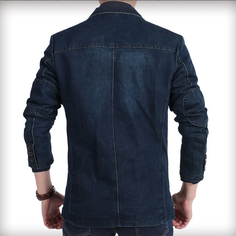 Модный мужской джинсовый пиджак, Блейзер сезон весна осень брендовый Мужской приталенный Повседневный джинсовый костюм, мужской блейзер, пальто, Мужской наряд 4XL
