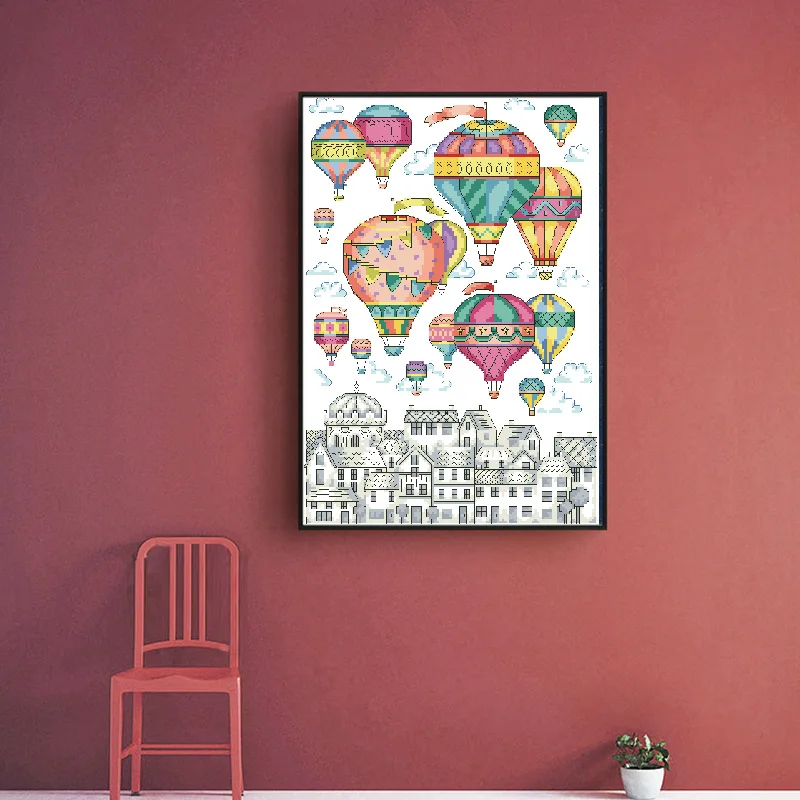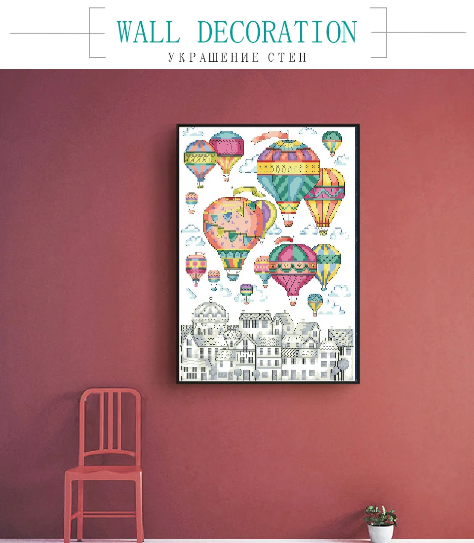 Наборы для вышивки с воздушным шаром, наборы для вышивки крестиком, холст с принтом, рукоделие с наборы ниток 11CT 14CT, картины для домашнего декора