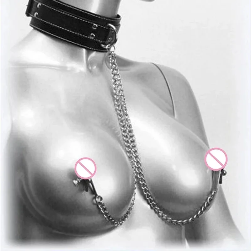 Ошейник с зажимом для груди, для пар, БДСМ, эротические секс-игрушки для женщин, для связывания, готическое кожаное колье
