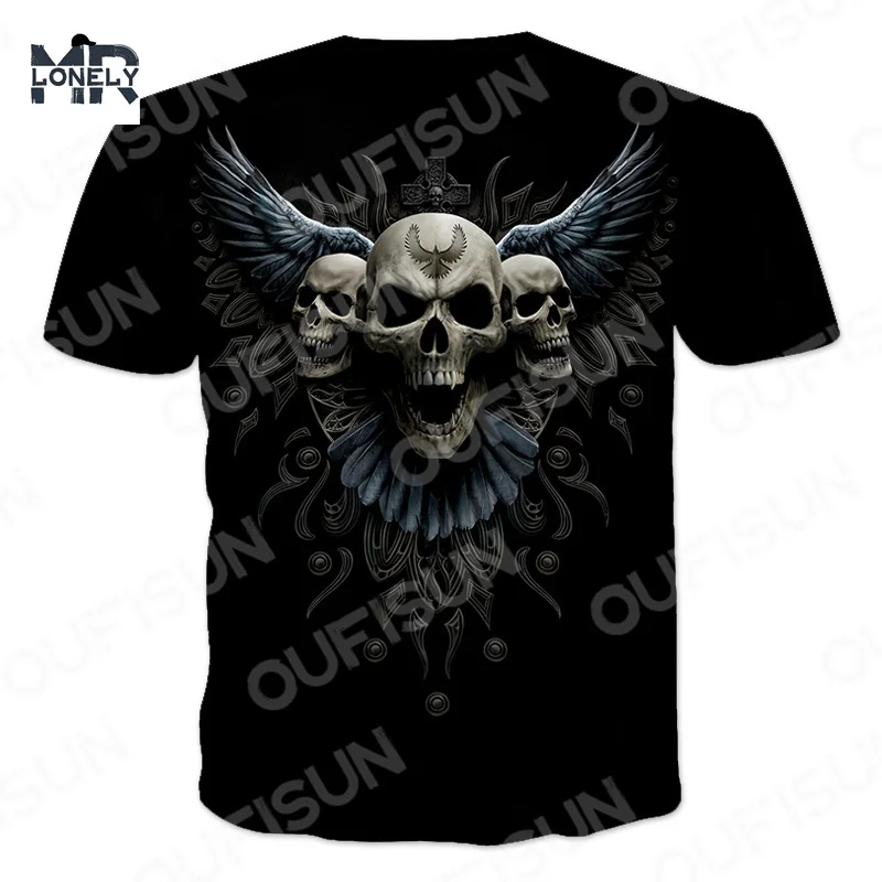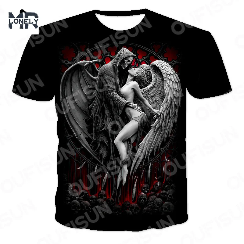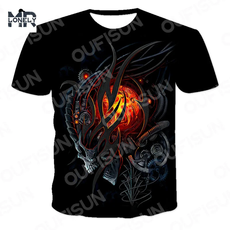 Рубашка мужская с коротким рукавом, футболка в стиле панк, с 3D-при...
