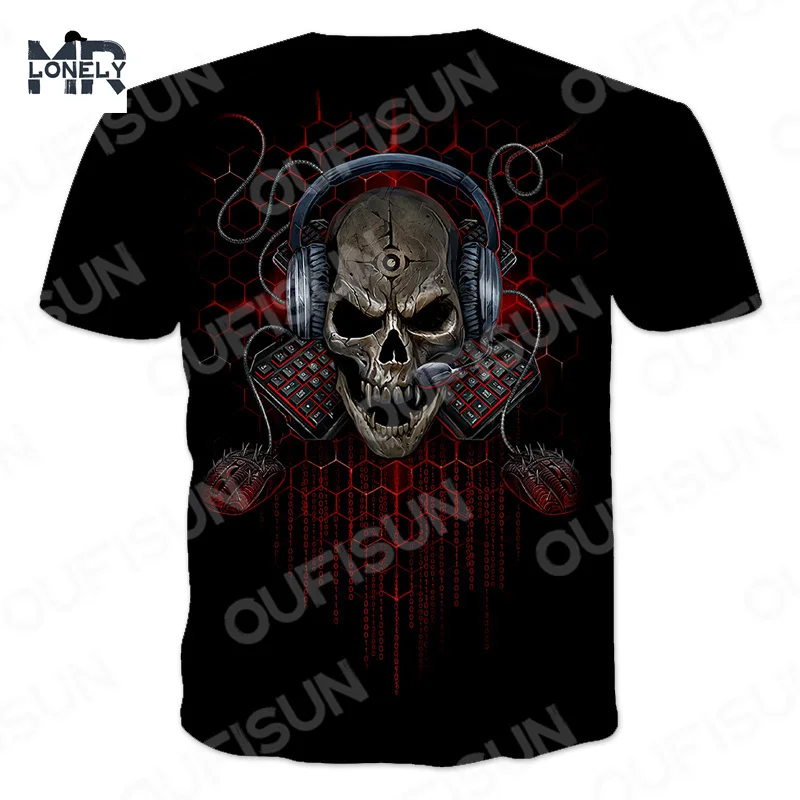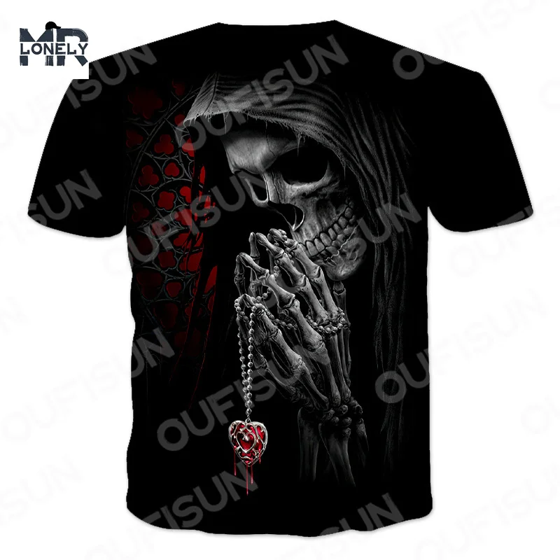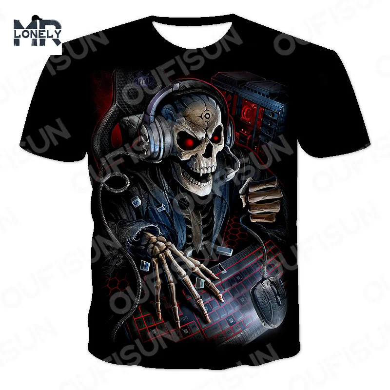 2021 летняя футболка с 3D-принтом скелета, повседневная мужская и ж...