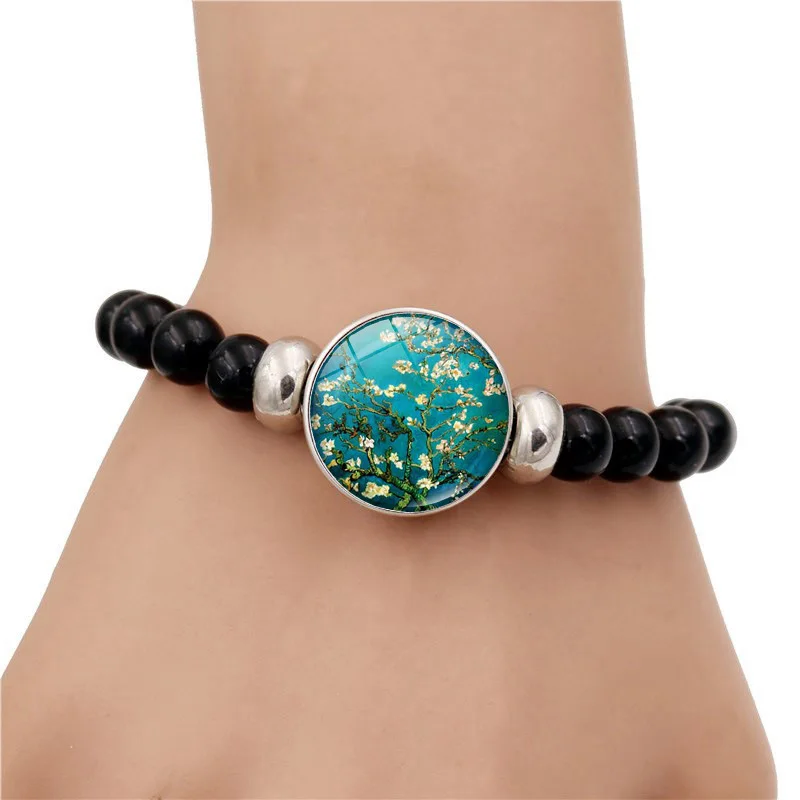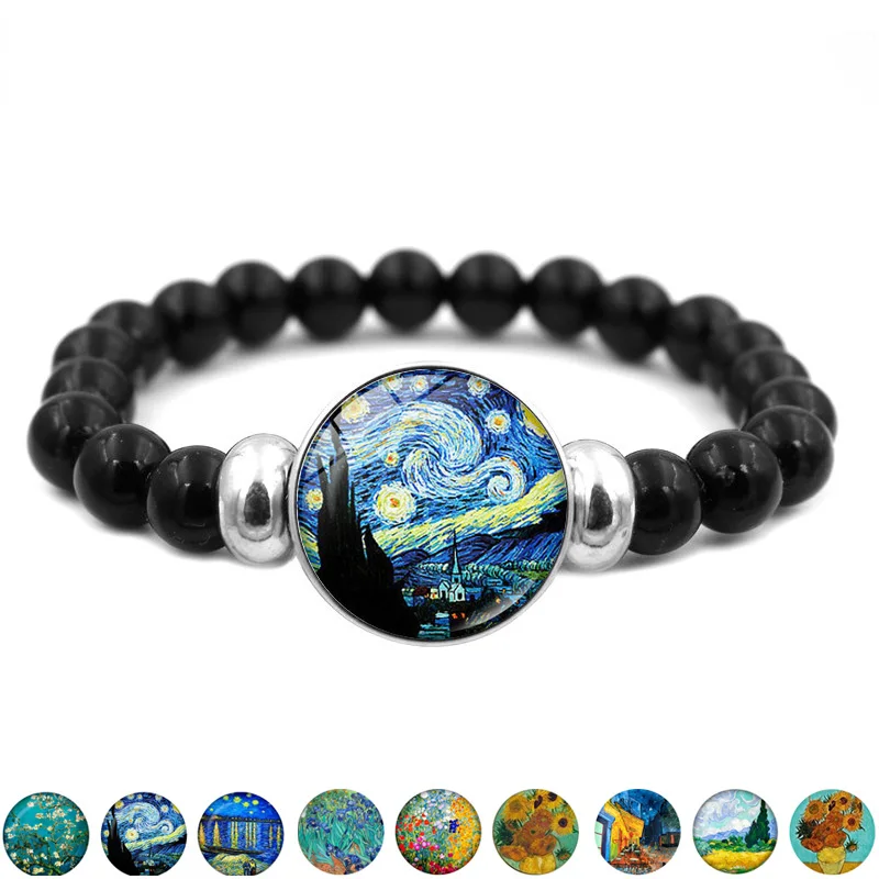Браслет Ван Гог со звездами ночи, из стекла, с черными бусинами, для мужчин и женщин