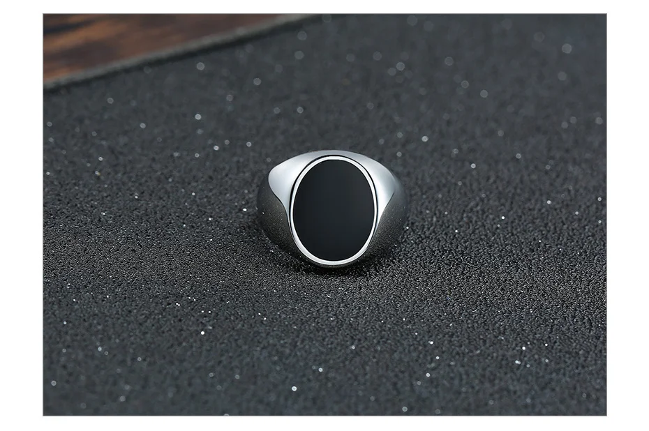 Современные мужские овальные черные простые боковые кольца с перстн...