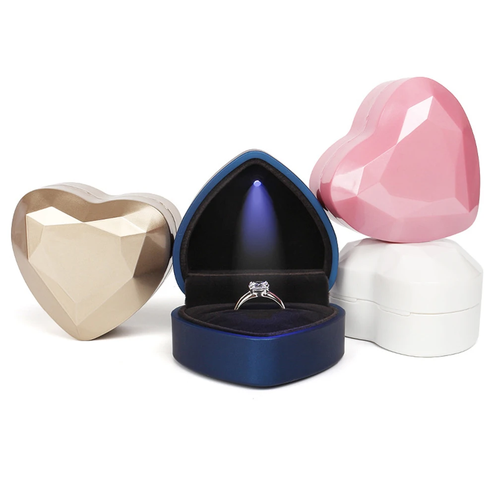 Шкатулка в форме сердца со светодиодной подсветкой для колец, ожере...