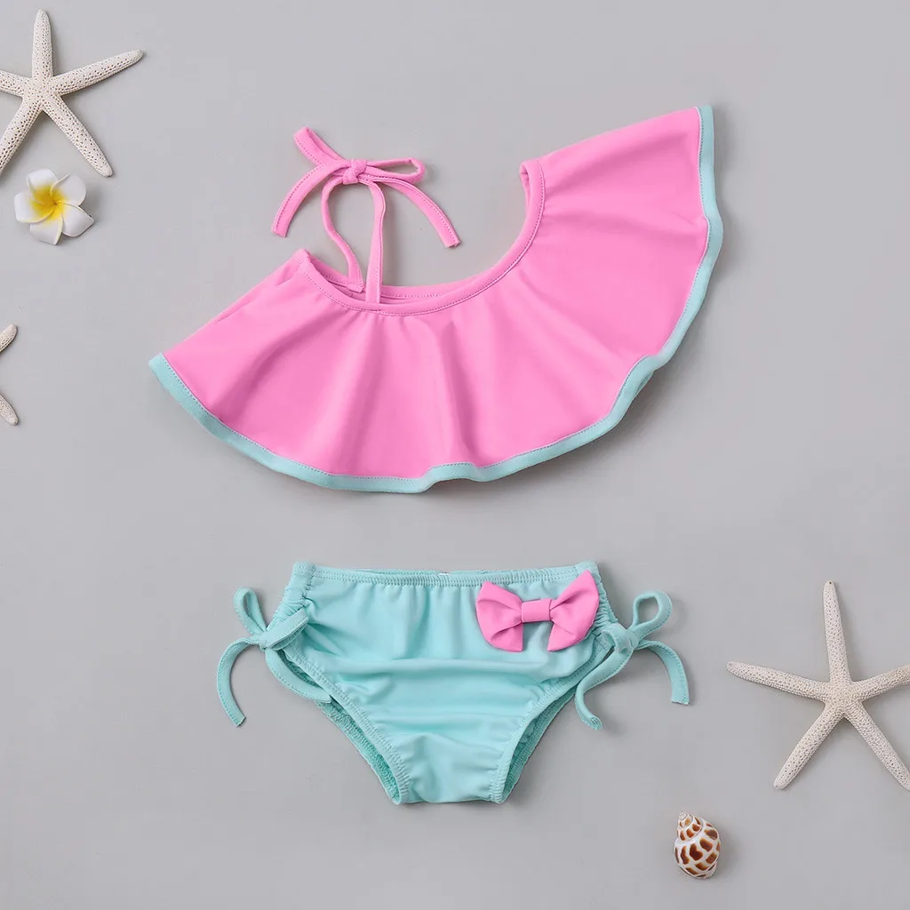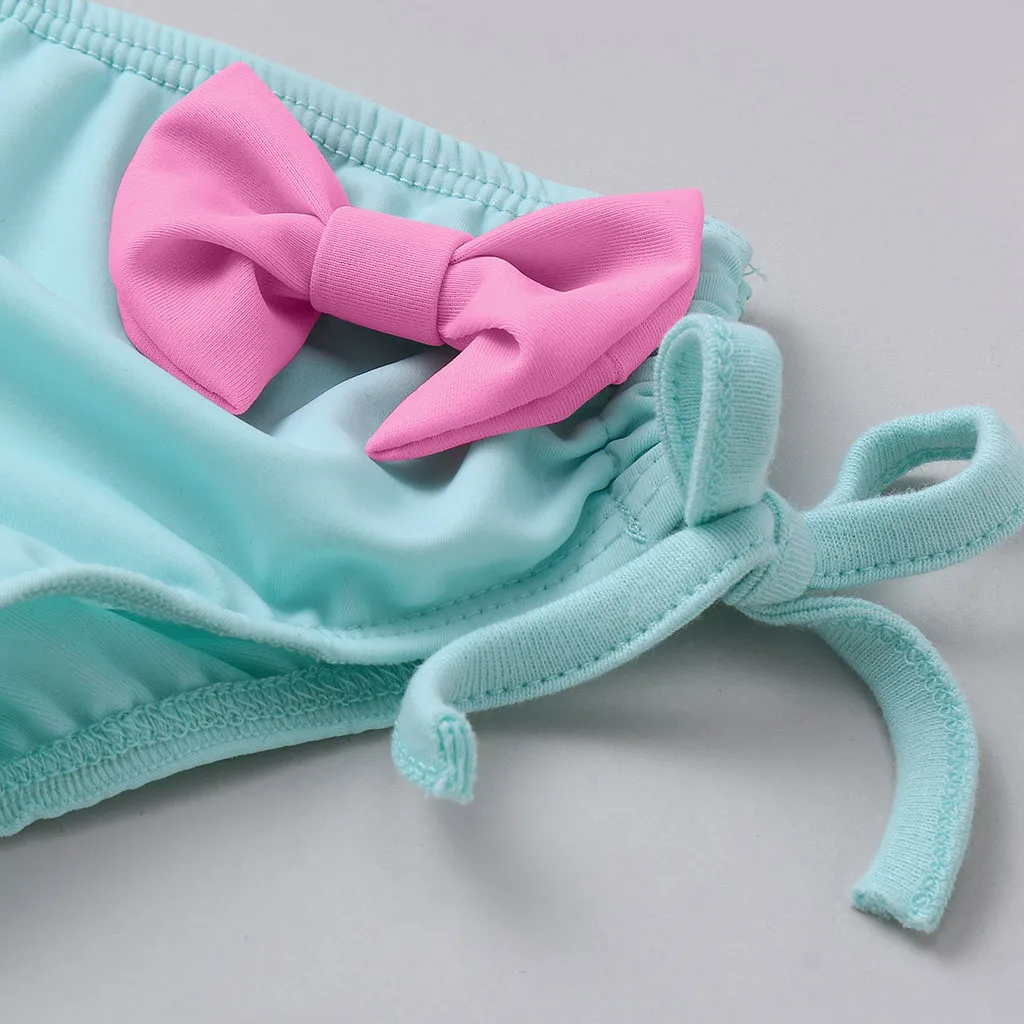 Милый купальник-бикини с бантиком для маленьких девочек, с открытыми плечами, на шнуровке, купальник, пляжная одежда, купальный костюм, купальник для маленьких девочек, Biquin