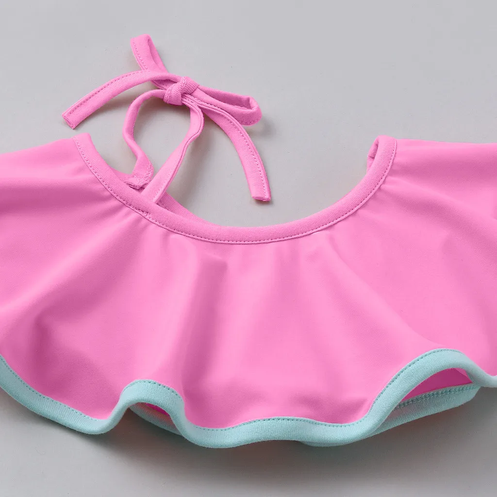Купальник для маленьких девочек, комплект из двух предметов, бикини с открытыми плечами и шнуровкой, купальник с накидкой и воротником, пляжная одежда для плавания, 0-4 лет, на лето
