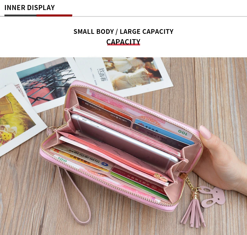 Модный прошитый женский кошелек с кисточками, новые вместительные Д...