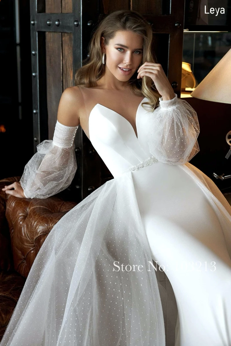 Привлекательное свадебное платье в стиле бохо, богемное свадебное платье с отстегивающимися рукавами, с поясом, украшенным бисером, 2021
