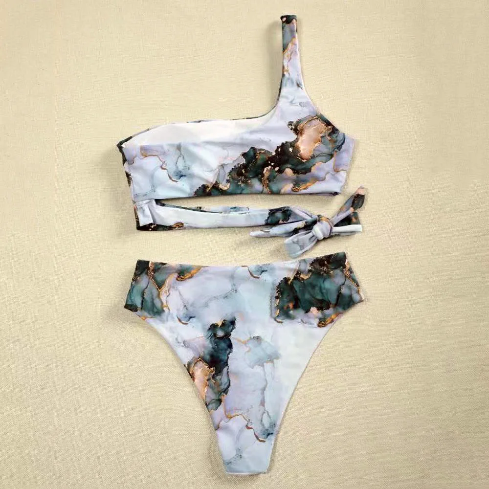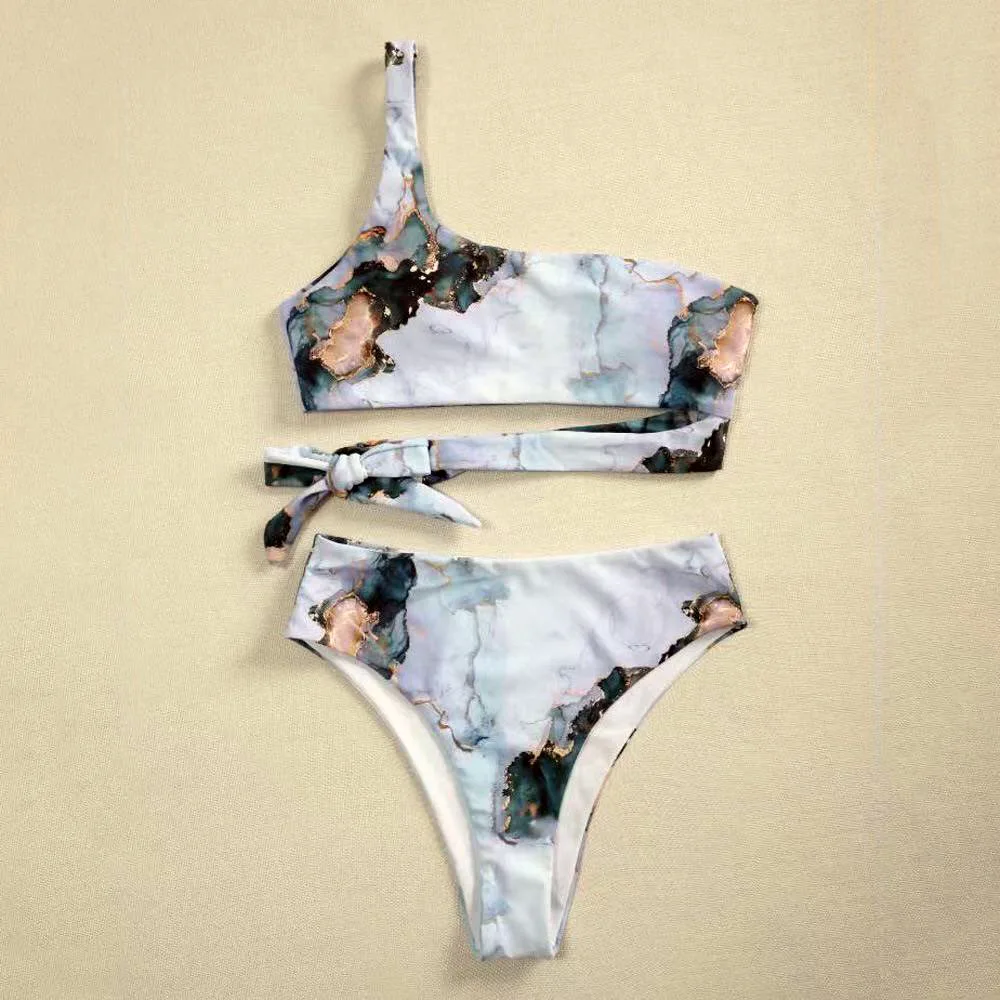 2021 комплект бикини на одно плечо с мраморным принтом, бюстгальтер...