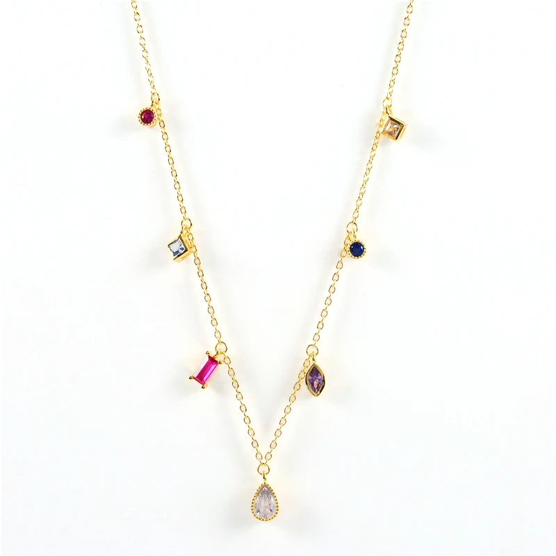 Автоклав разноцветный Радужный Циркон 925 серебряное ожерелье для женщин Изысканные геометрические изысканный подарочные ожерелья украшения