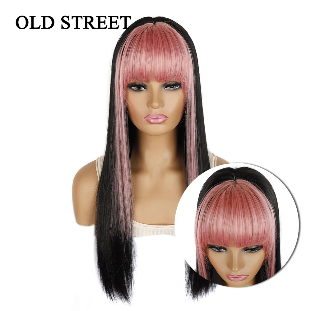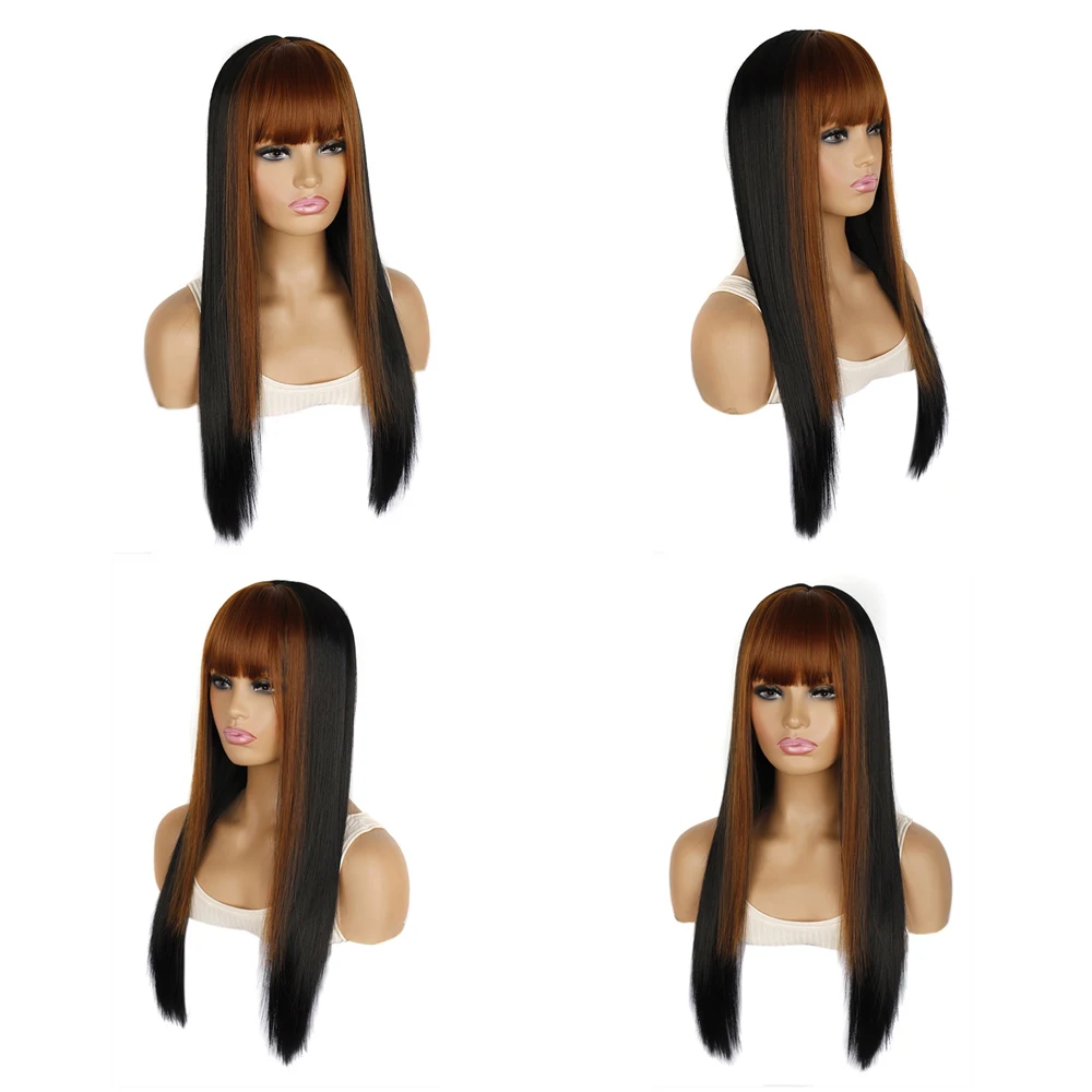 Длинный прямой синтетический парик с челкой разных цветов 60 см высокотемпературные синтетические волосы парики для женщин
