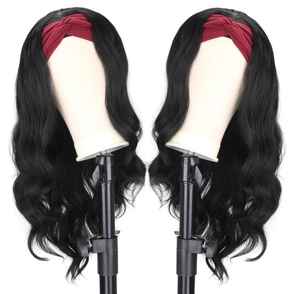 Женские Искусственные волнистые натуральные черные блонд парики с головной повязкой искусственные волосы синтетические парики для черных женщин