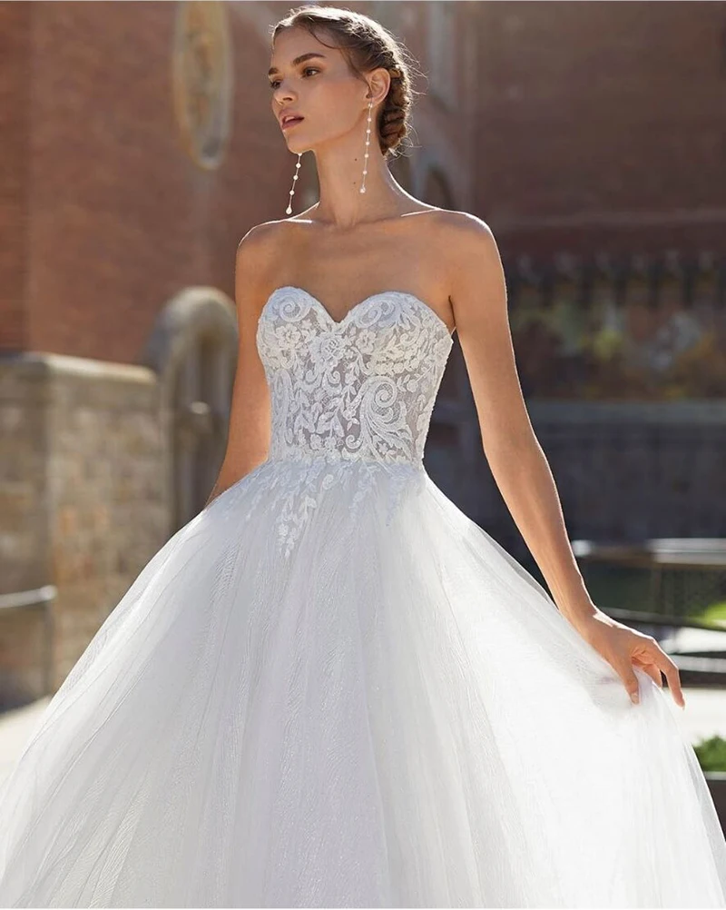Свадебное платье принцессы LORIE, кружевное платье-трапеция с аппли...