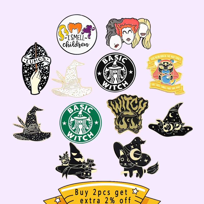 Женская эмалированная брошь Dark Witch, металлическая брошь в готическом стиле, в стиле панк