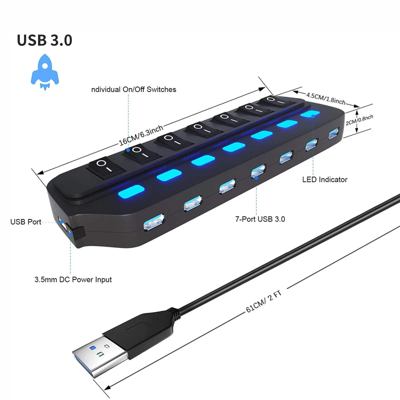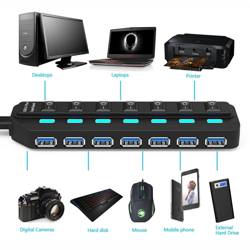 Для ноутбуков ПК Аксессуары для быстрой зарядки usb-хаб 3,0 разветвитель 47 Порты и разъёмы Мульти USB 3,0 центр данных серийное оборудование переключатель включениявыключения и светильник
