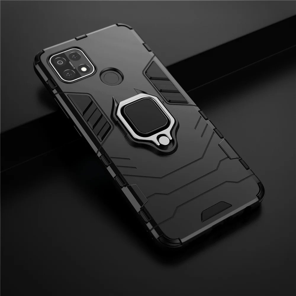 Противоударный чехол-бампер из ТПУ для OPPO A15 Caes с кольцом и подставкой для Oppo A15 6,52 "OppoA15, жесткий защитный чехол из поликарбоната