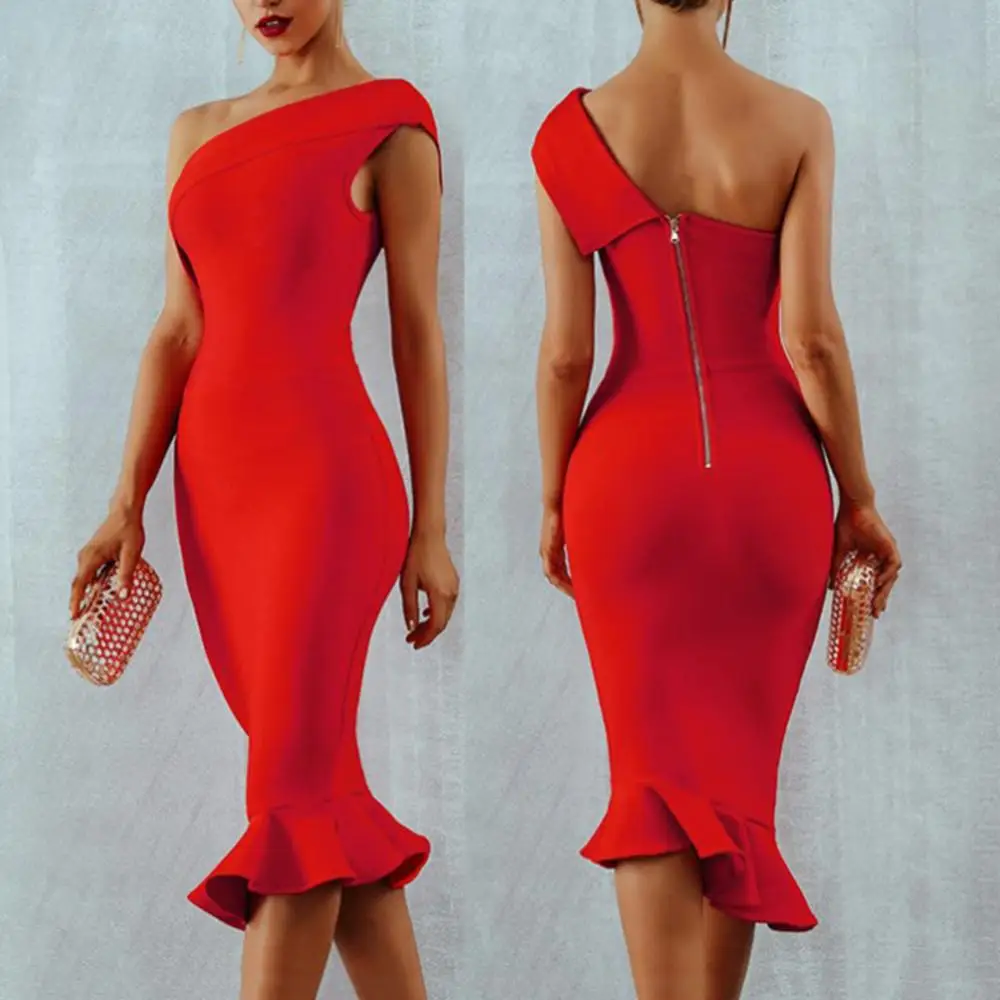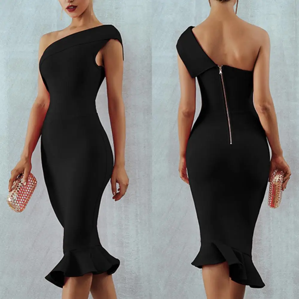 Women's dresses, plus size oblique shoulder straps, mid-length party sexy dresses, irregular dresses, women's robesOne-shoulder tight one-piece dress mid-length ladies party dress summer sleeveless suit sexy hollow dress women