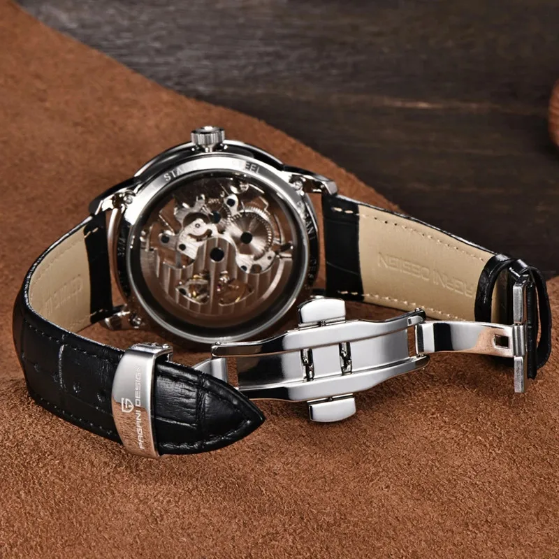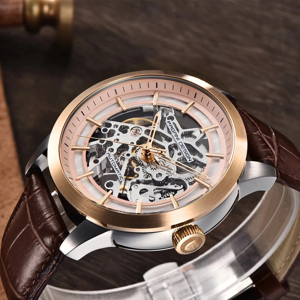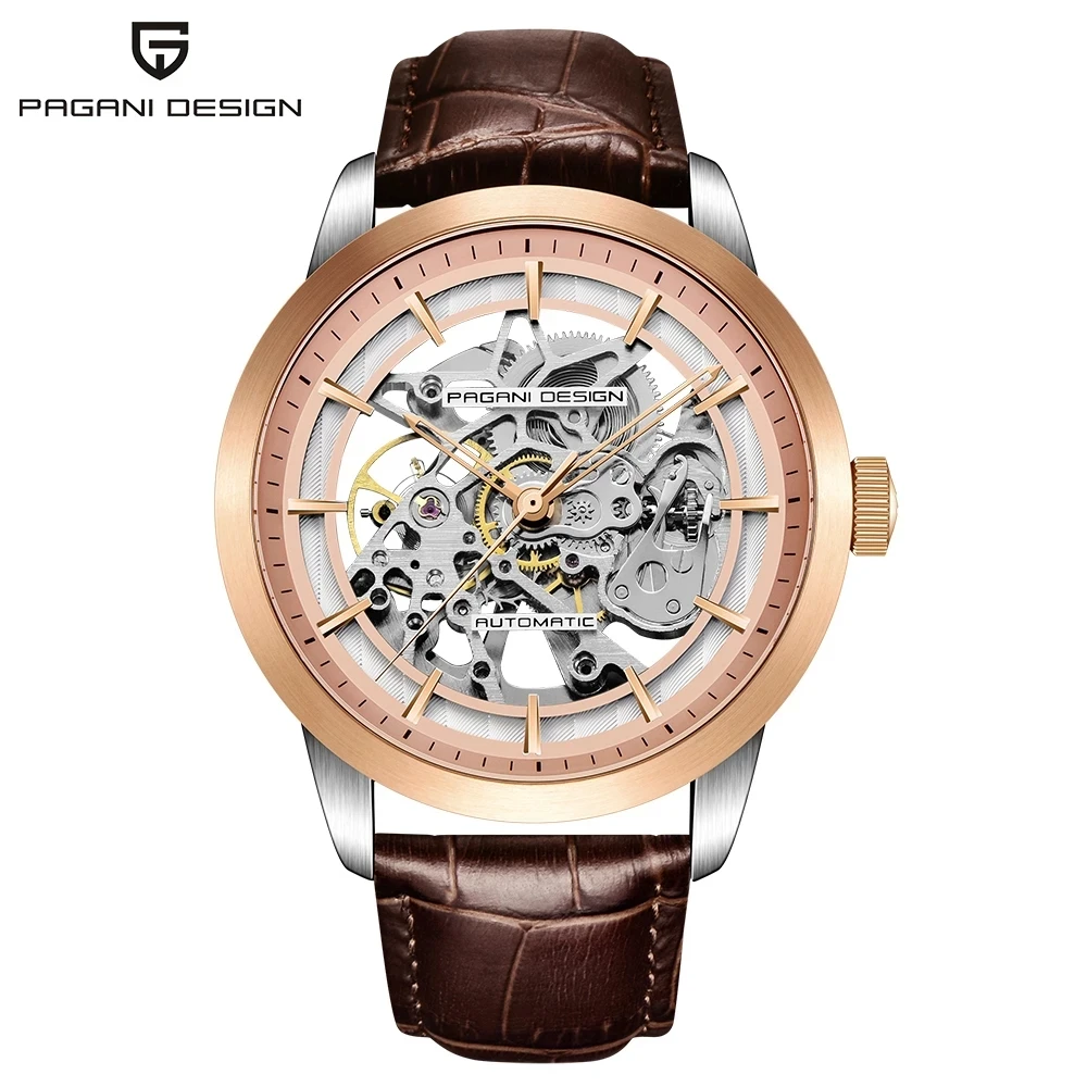Часы наручные PAGANI DESIGN Мужские автоматические, брендовые Роскошные модные механические водонепроницаемые с кожаным ремешком, с скелетом, 2021