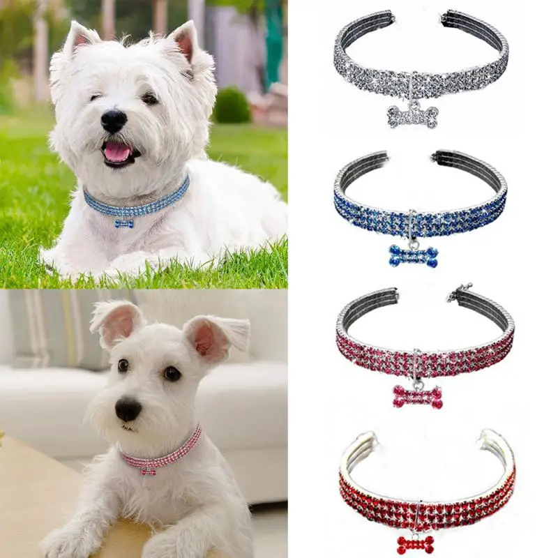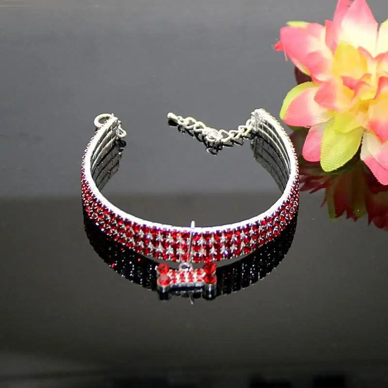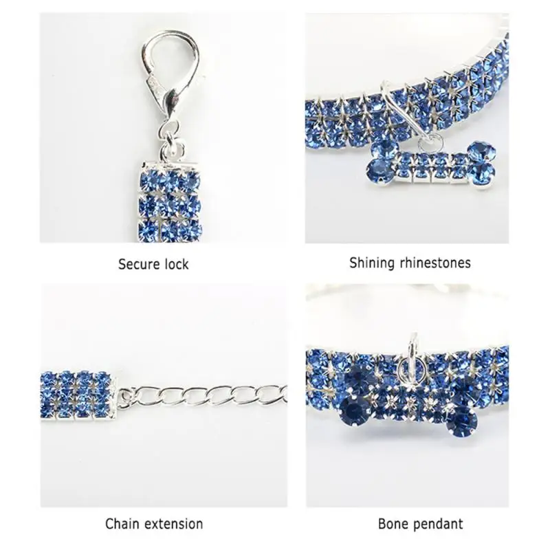 Ошейник с инкрустацией из блестящей Стразы, хорошая эластичность и регулировка.