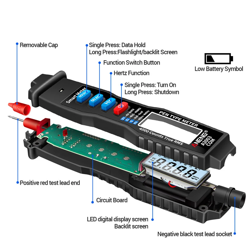 Цифровой мультиметр ANENG A3003 в виде ручки, бесконтактный Тестер ...