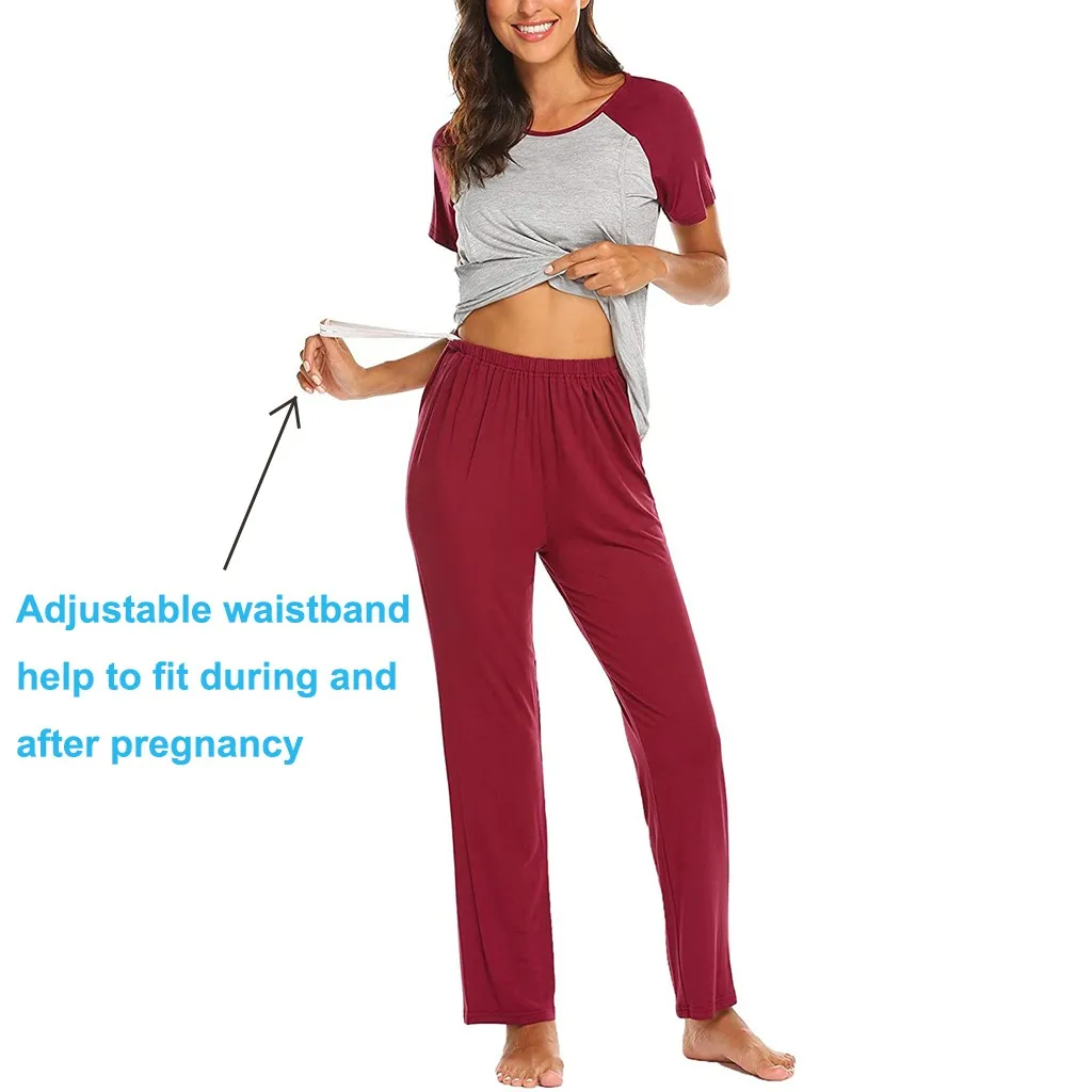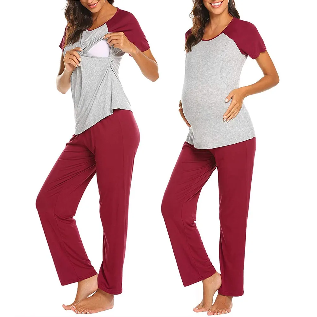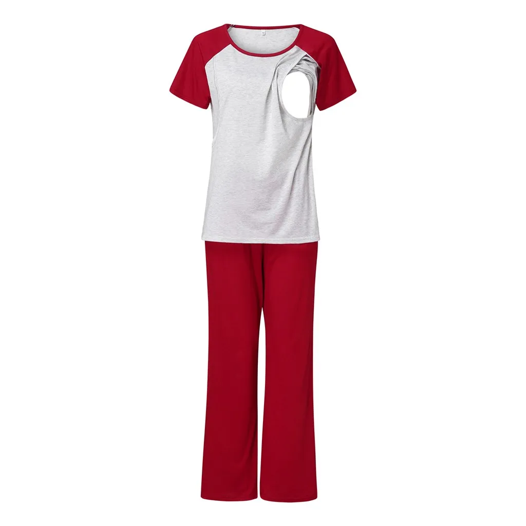 Женская одежда для отдыха, футболка с коротким рукавом для беременных и кормящих детей + однотонные брюки, пижамный комплект, домашние повседневные Костюмы для беременных L3