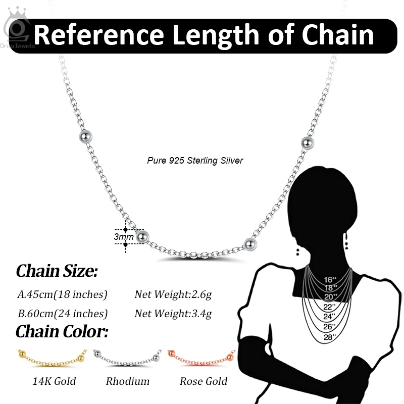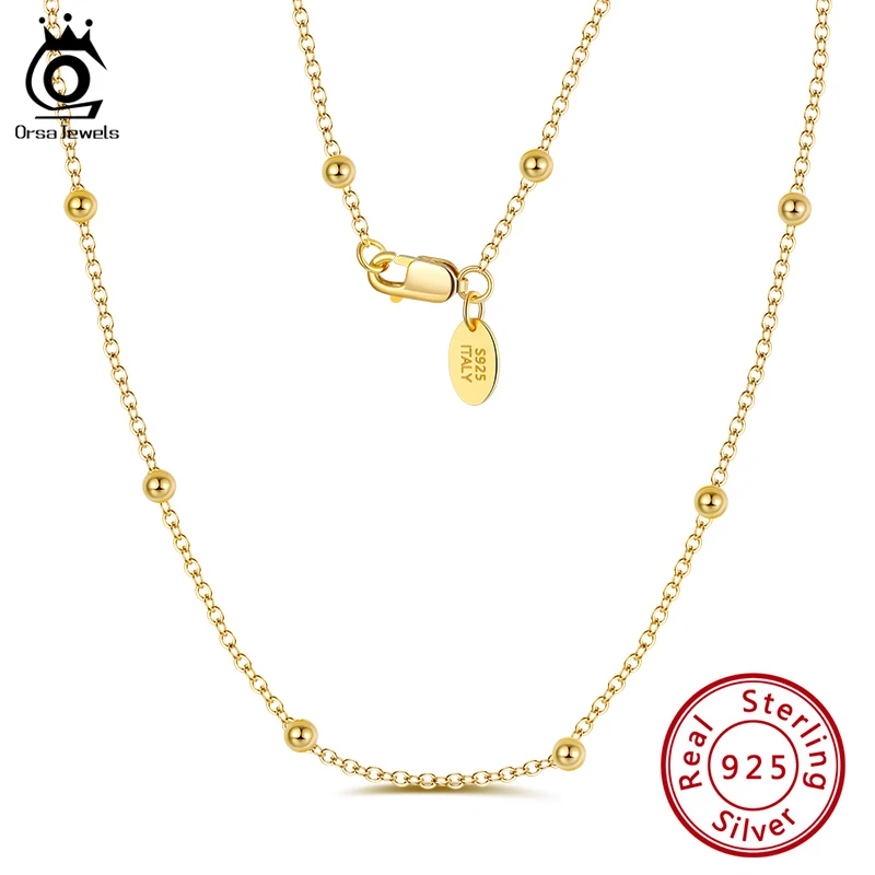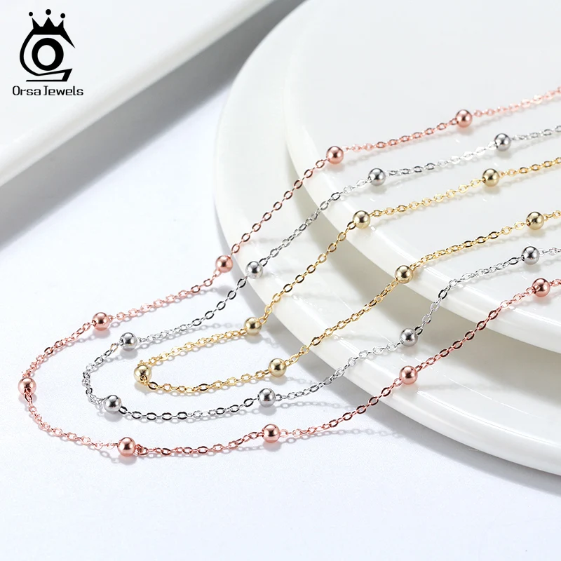 ORSA JEWELS 925 стерлингового серебра 1,0 мм кабель цепи ожерелье с 2,0 мм шар бусы элегантные спутниковой связи цепи для женщин ювелирные изделия SC43