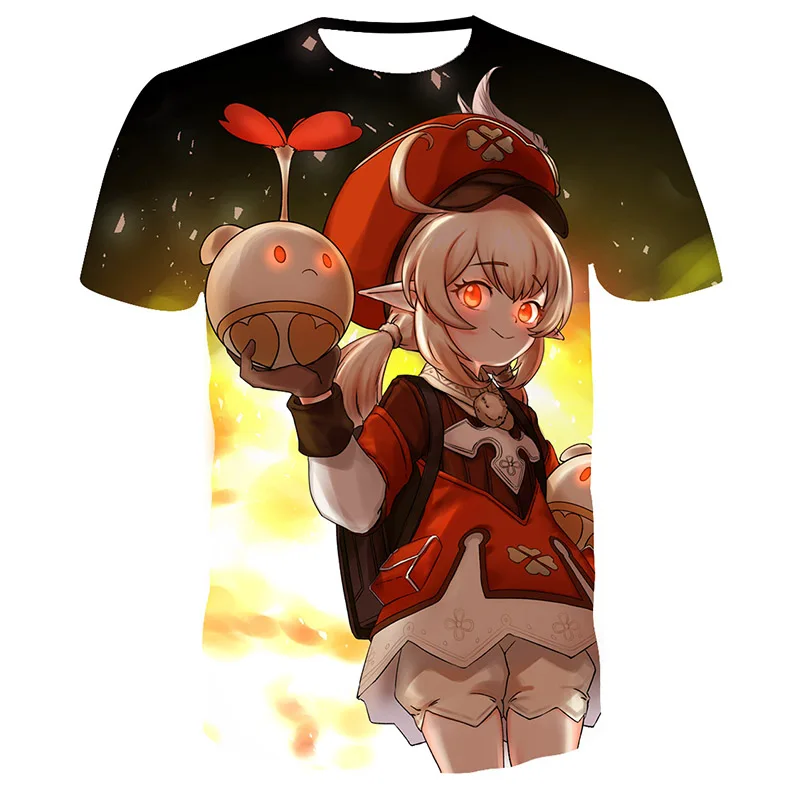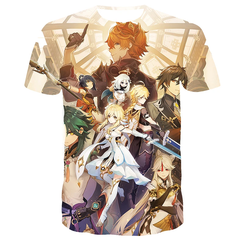 Футболка с объемным рисунком аниме-игры Genshin Impact, футболки для мальчиков и девочек, топы для студентов, крутая дышащая одежда с коротким рукавом для подростков, футболка унисекс