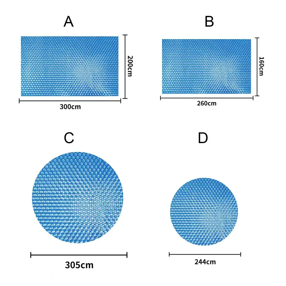 Солнечный брезент экологически чистый нагрев простой ПЭ бассейн изоляционный коврик для улицы Описание: Экологически чистое Отопление позволяет экономить 70 процентных затрат. Солнечный брезент поглощает тепло солнца и возвращает его в воду в бассейне. Это уменьшает затемнение воды, потому что защищает воду от воздействия грязи. Высококачественная Солнечная пленка для бассейна предназначена для экологически безопасного и экономичного нагрева воды солнечной энергией. Положительный побочный эффект солнечного брезента заключается в том, что значительно уменьшает испарение воды. Легкая функция делает нашу солнечную пленку можно разрезать на любой размер и круглая или квадратная. Благодаря высококачественной воздушной подушке PE и толщине материала 120 & micro;m, тепло, хранящееся в бассейне, собирается, так что просто небольшая потеря тепла происходит в течение ночи. Наш продукт имеет разные размеры на ваш выбор, а именно: a, B, C, D. Длина фасона А (прямоугольная) составляет 300 см, а ширина-200 см. Длина B (прямоугольная) 260 см, ширина 160 см. Длина C (круглая) 305 см, ширина 305 см. Длина D (круглая)-244 см, ширина-244 см. Этот продукт используется для различных видов бассейнов. Наименование товара: солнечный брезент Материал: ПЭ Стиль: A (прямоугольный 300x200 см), B (прямоугольный 260x160 см), C (круглый 305x305 см), D (круглый 244x244 см) Особенности: экономичность, защита от пыли, УФ-защита Информация о размере: Стиль А (прямоугольный): 300 см x 200 см/118,11 "x 78,74" (прибл.) Стиль B (прямоугольный): 260 см x 160 см/102,36 "x 62,99" (прибл.) Стиль C (круглый): 305 см x 305 см/120,08 "x 120,08" (прибл.) Стиль D (круглый): 244 см x 244 см/96,06 "x 96,06" (прибл.) Примечания: Благодаря светильник и экрана Цвет Товара может быть s светильник ly отличается из-за характеристик монитора компьютера. Возможны незначительные отклонения в размерах из-за различных измерений вручную. Посылка включает в себя: 1 x Солнечный брезент