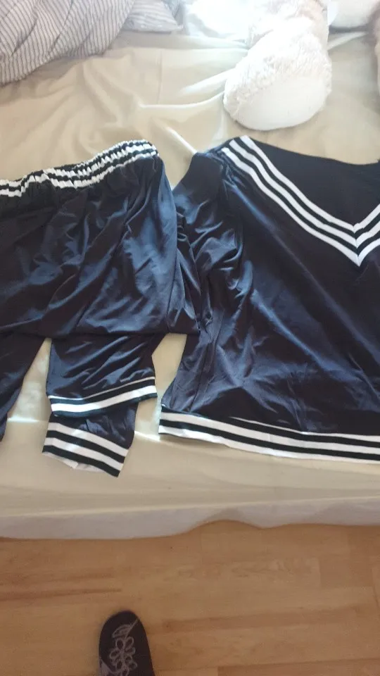 Есть два минуса у костюма. Внизу кофты нет резинки как на фото и штаны большие. Заказала XL свой размер,а они просто висят как пижама.