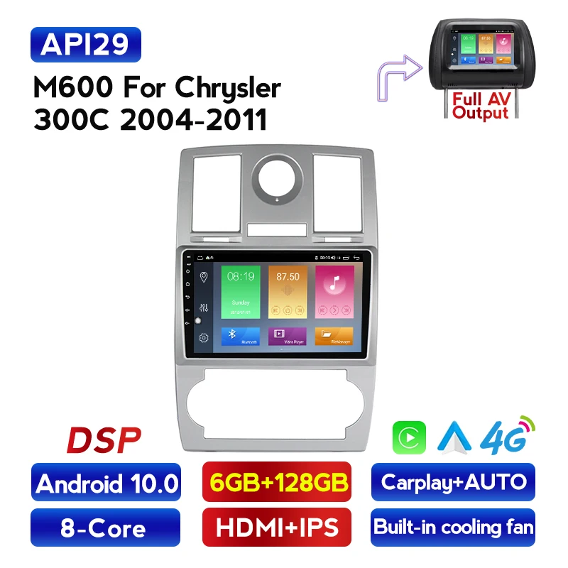 Автомагнитола 2DIN, 6 ГБ + 128 Гб, Android 10, для Chrysler 300C 2004-2011, мультимедийный видеоплеер, навигация GPS