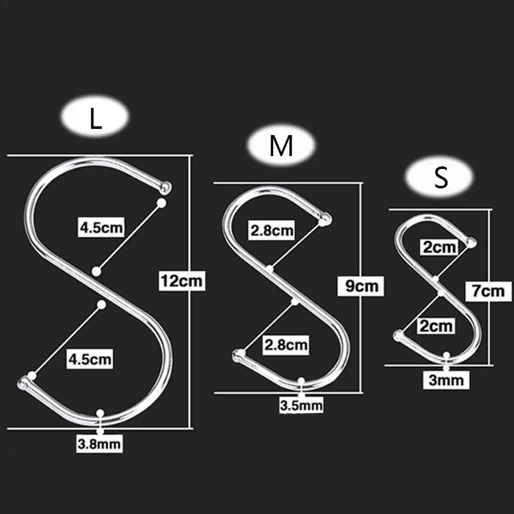 10 шт./компл. s-образные Крючки из полированной нержавеющей стали, металлические вешалки, вешалки для одежды, вешалки для кухни, спальни и кухни