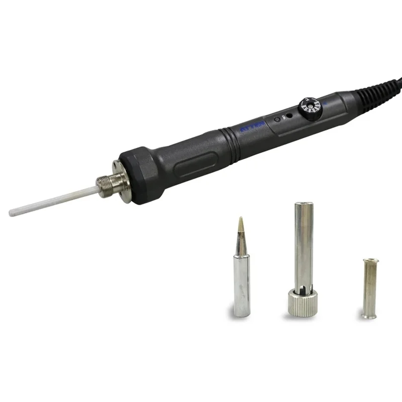 Высокоэффективный четырехъядерный керамический нагреватель PTCТемпература в ℃ и ℉Температура до 500 ℃ делает его универсальнымРучная калибровка температуры с помощью регулятораВысокая эффективность нагрева для снижения энергопотребления.Термостойкий и огнестойкий материал с ручкой, светильник, тонкий и эргономичный дизайн.Паяльный наконечник разработан отдельно от нагревателя и использует Сменные серии T900 для экономии затрат на использование.Заземленный 3 ядра шнур питания и защитой от статического электричества дизайн для того, чтобы уменьшить повреждение пользователя и чувствительные электронные компоненты.