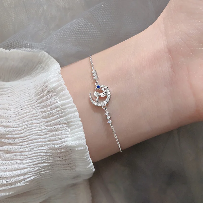 Женские Модные S925 посеребренные платины в сказочном стиле с принтом Маленький принц, с изображением луны и звезд, с характером браслеты 308