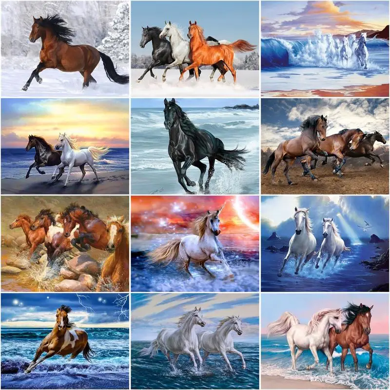 Алмазная картина RUOPOTY с полным заполнением, квадратная 5D картина с рисунком лошади, круглые алмазные украшения, стразы, украшение для дома, подарок сделай сам