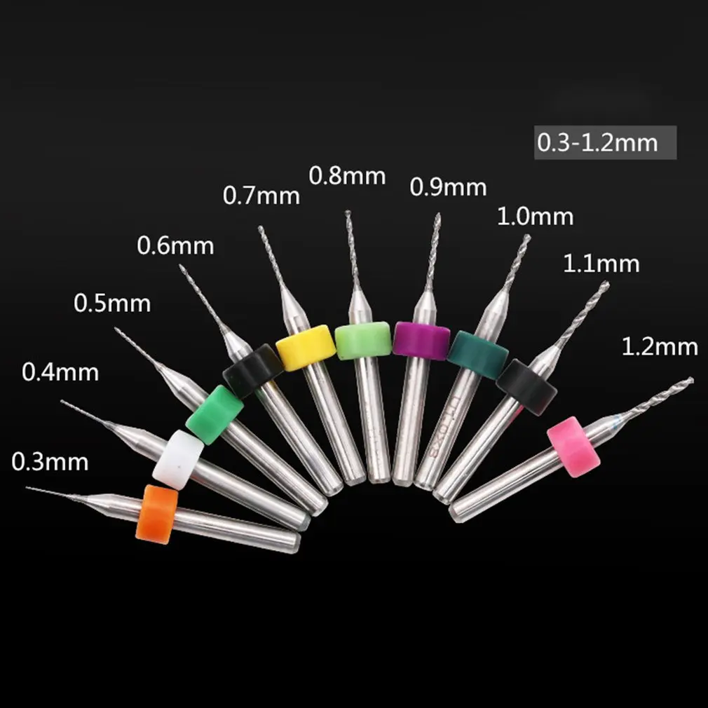 10 шт.компл. от 0,1 мм до 1,2 мм, мини-сверло для печатной платы, карбид вольфрамовой стали для печатной платы, сверла для станка с ЧПУ