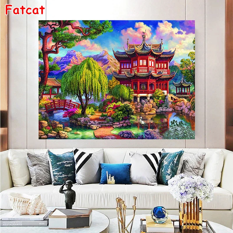 Diy 5D алмазная живопись квадратная круглая дрель вишневый цвет храм Япония Алмазная вышивка мозаика Набор для вышивки крестом сад PP824