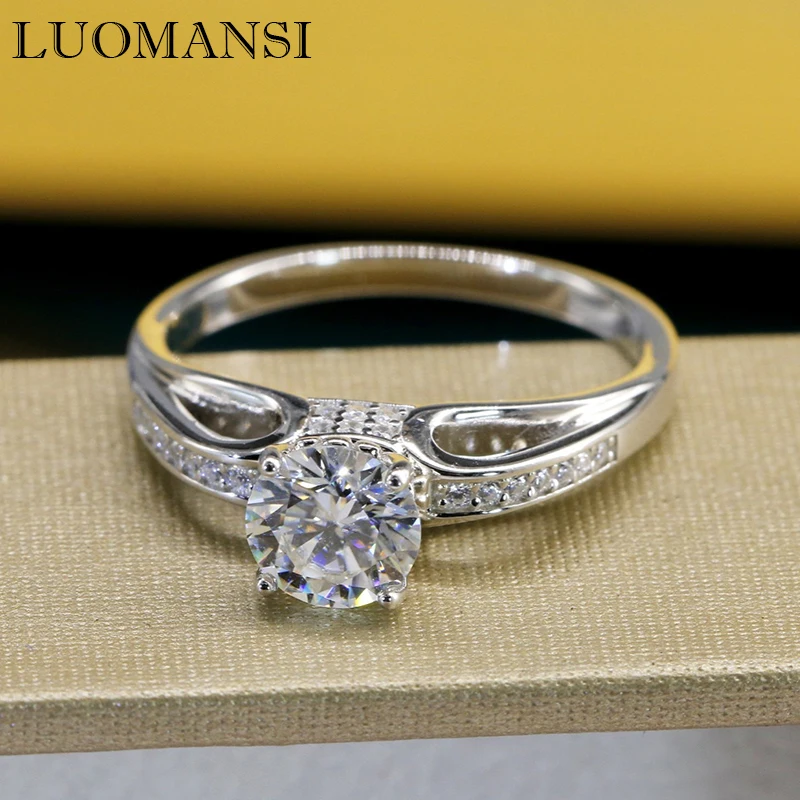 Luomansi Real 1 карат муассанит кольцо прошло Алмазный тест для свадебной помолвки вечерние 100%-S925 Серебряные женские ювелирные изделия подарок