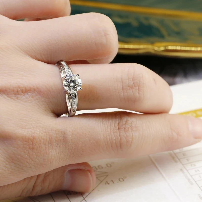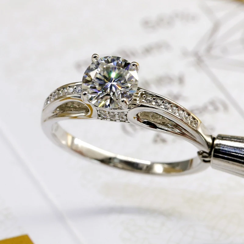 Настоящее 1 карат муассанит кольцо прошел Diamond тесты для обручальное вечерние 100%-925 стерлингового серебра для женщин, ювелирное изделие, подарок